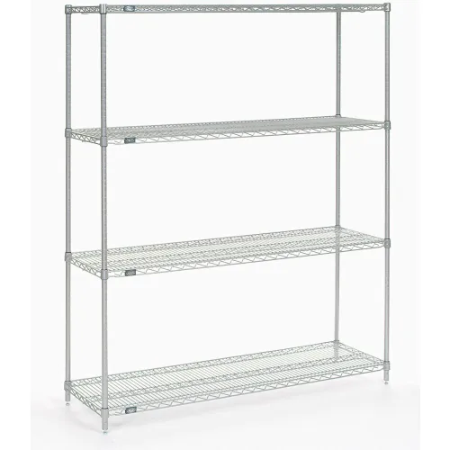 Nexel 4-Shelf Wire Shelving Unit, Clear Epoxy Finish, 21"W x 60"L x 74"H
