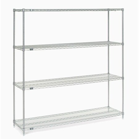 From Nexel Nexshelf Restaurant Shelving - Starter Shelving Unit, wire, 4 shelves, 4 posts and plastic shelf clips, 74"H, 21"W, 72"L, clear epoxy powder coated zinc-chromate plated finish, Poly-Z-Brite, shipped unassembled - Your Source for Quality Restaurant Equipment and Supplies.