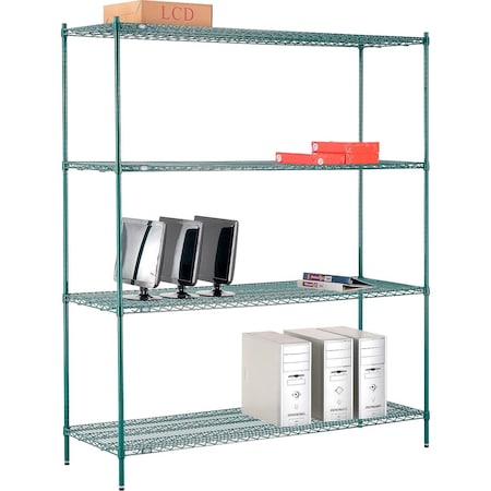 Nexel Poly-Green, 4 Tier, Wire Shelving Starter Unit, 72" W x 21" D x 86" H