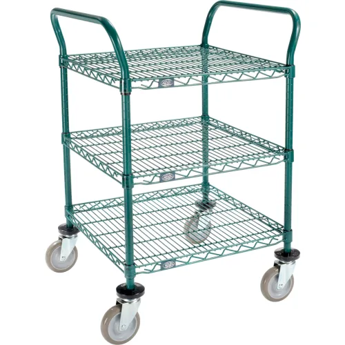 Nexel? Utility Cart, 3 Shelf, Poly-Green?, 24"L x 24"W x 39"H, Polyurethane Swivel Casters