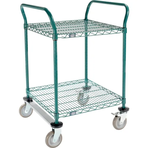 Nexel Utility Cart, 2 Shelf, Poly-Green, 24"L x 24"W x 39"H, Polyurethane Rigid Casters