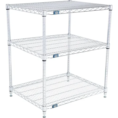 Nexel? 3 Shelf, Stainless Steel Wire Shelving Unit, Starter, 30"W x 24"D x 34"H