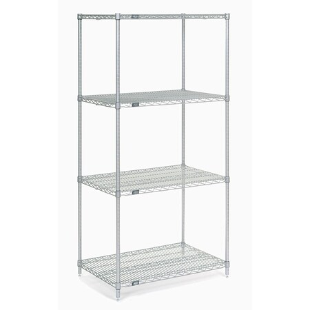 Nexel 4-Shelf Wire Shelving Unit, Clear Epoxy Finish, 24" W x 30" L x 86" H