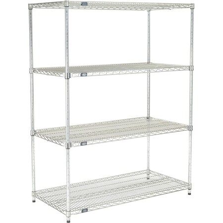 Nexel 4-Shelf Quick Adjust Wire Shelving Unit, Clear Epoxy Finish, 24"W x 36"L x 74"H