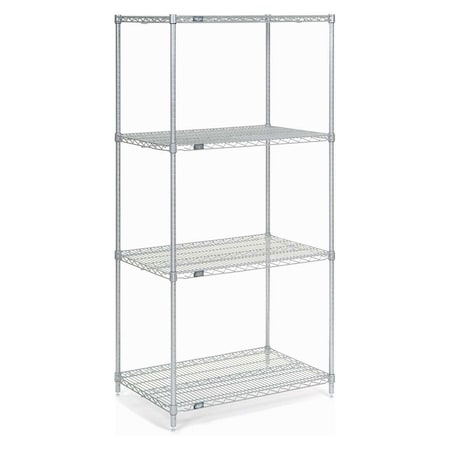 Nexel Silver Epoxy Wire Shelving 24"W x 36"L x 74"H (4 Shelves)