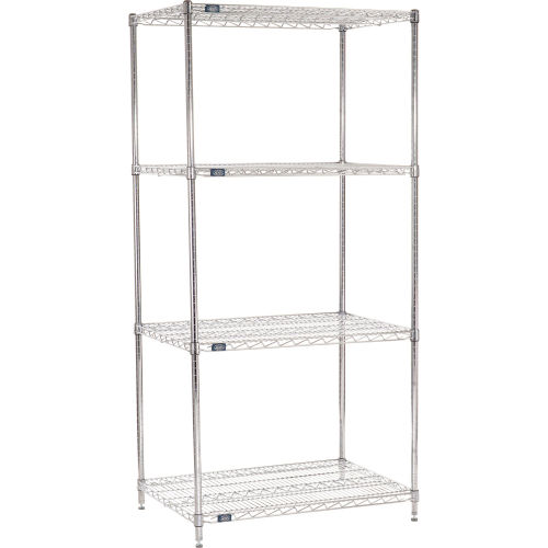 Nexel Industries products are trusted for their rigidity and strength which is why theyre used extensively in the food service health care industrial and commercial markets Warranted against rust corrosion these products come with maximum storage space and are easy to clean and maintainFeatures. High Gloss Finish. Good for Dry Environment. Shelves adjust easily on 1 increments. 600800 Pound Shelf Capacity. Unit Comes with 4 shelves and 4 posts. Plate Starter Shelf UnitSpecifications. Color Chrome. Finish Plate. Max Height Top to Bottom 86. Max Width Side to Side 42. Max Depth Front to Back 24. Weight 80