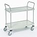 Heavy Duty Utility Cart ideal for use in restaurants, offices, warehouses, schools and just about anywhere. Strong solid plastic shelves provide increased capacity and easy to clean surfaces. Shelves can be easily adjusted on 1 inch increments with numbered markings. Rolls smoothly on 5" polyurethane stem casters, 2 with brakes. 900 lb. load capacity. NSF approved for dry use., Lot of 1