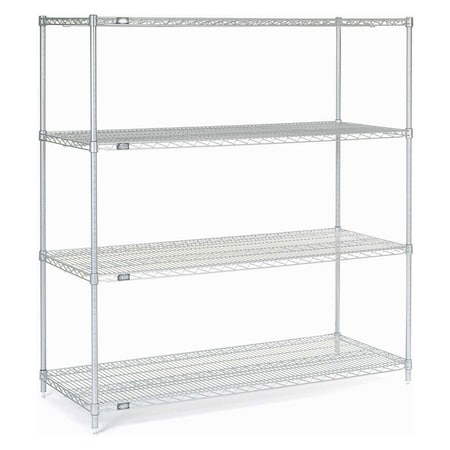 Nexel®, Nexelate®, Silver Epoxy, 4 Tier, Wire Shelving Starter Unit, 60 inchesW x 24 inchesD x 63 inchesH