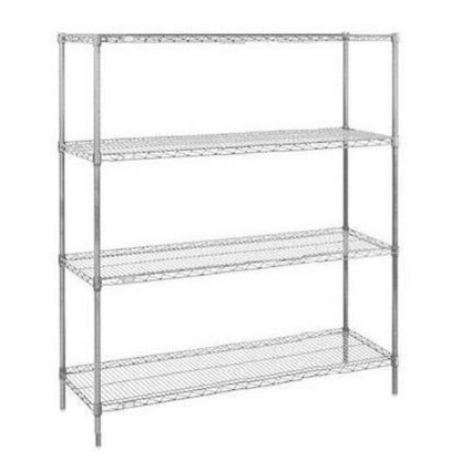 From Nexel Nexshelf Restaurant Shelving - Starter Shelving Unit, wire, 4 shelves, 4 posts and plastic shelf clips, 74"H, 24"W, 60"L, chrome-plated finish, shipped unassembled - Your Source for Quality Restaurant Equipment and Supplies.