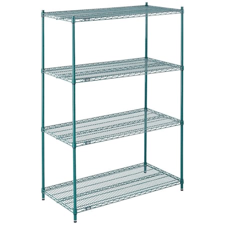 Nexel 4-Shelf Wire Shelving Unit, Green Finish, 24"W x 72"L x 74"H