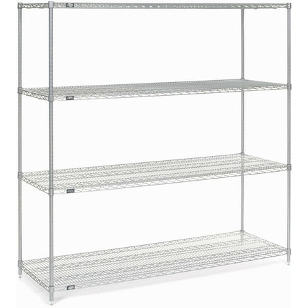 Nexel 4-Shelf Wire Shelving Unit, Clear Epoxy Finish, 24"W x 72"L x 74"H