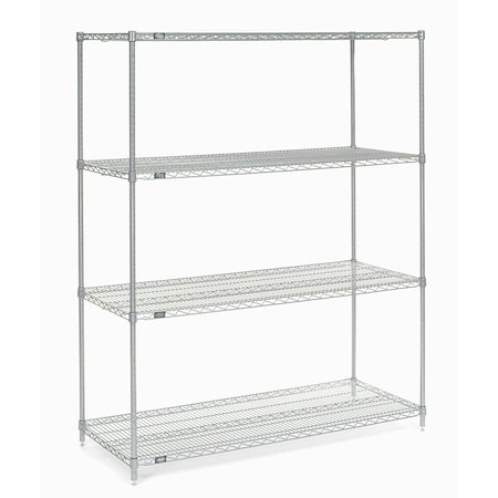 Nexel Adjustable Wire Shelving Unit, 4 Tier, Commercial Dry Storage Rack, 30" x 60" x 86", Chrome