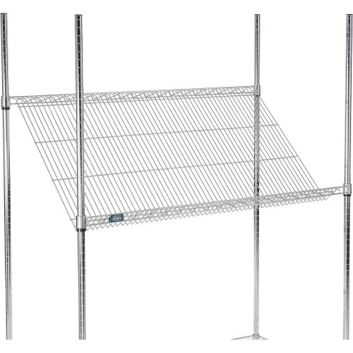 Nexel Wire Gravity Flow Shelves with rear load design assure first-in, first-out inventory control. Shelf collar slides over plastic snap-on sleeves along numbered grooved posts for quick adjustment in 1" increments. Gravity flow shelves include a 4-1/4"H retaining lip to keep contents in place. Open wire will not collect dirt like solid shelves and increases visual checks and sprinkler effectiveness.