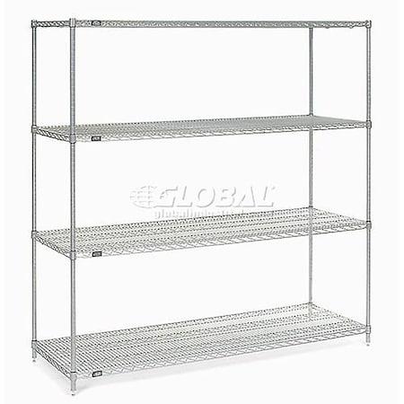 4-Shelf Wire Shelving Unit, Silver EP, 72"W x 36"D x 74"H
