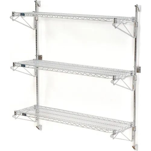 Nexel® Chrome Wall Mount Wire Shelving 48"W x 14"D x 54"H 3 - Shelf Starter