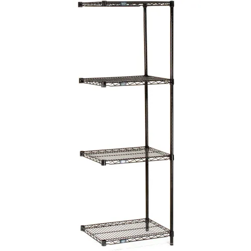 Nexel Black Epoxy, 4 Tier, Wire Shelving Add-On Unit, 54" W x 18" D x 54" H