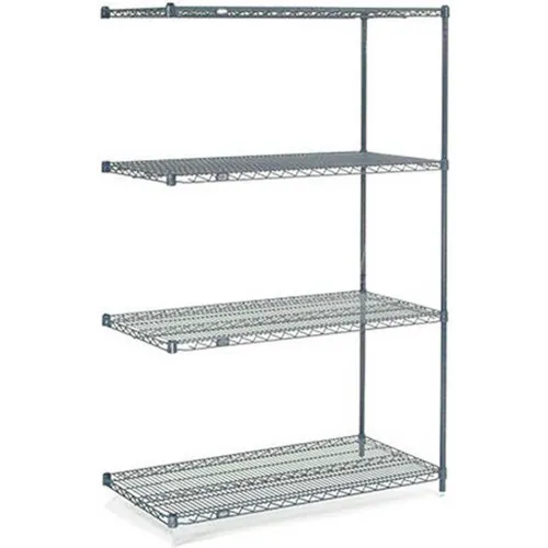 5 Tier Wire Shelving Add-On Unit, 48"W x 21"D x 63"H. Add-On Shelving Units allow unit expansion to make the most of storage space. Includes 2 posts with leveling feet, 5 shelves, Snap-On sleeves and S-hooks to join units.Nexelon® is the top of the line blue metallic finish designed to handle extreme wet, hot or cold environments. Open design maximizes air and light circulation and minimizes dust accumulation. Shelves easily adjust without tools and align accurately at 1" increments. Shelf clips snap on post, allowing shelf collar to slide over for a secure fit. , Lot of 1
