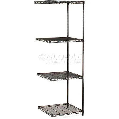 Nexel Black Epoxy, 4 Tier, Wire Shelving Add-On Unit, 24" W x 24" D x 86" H