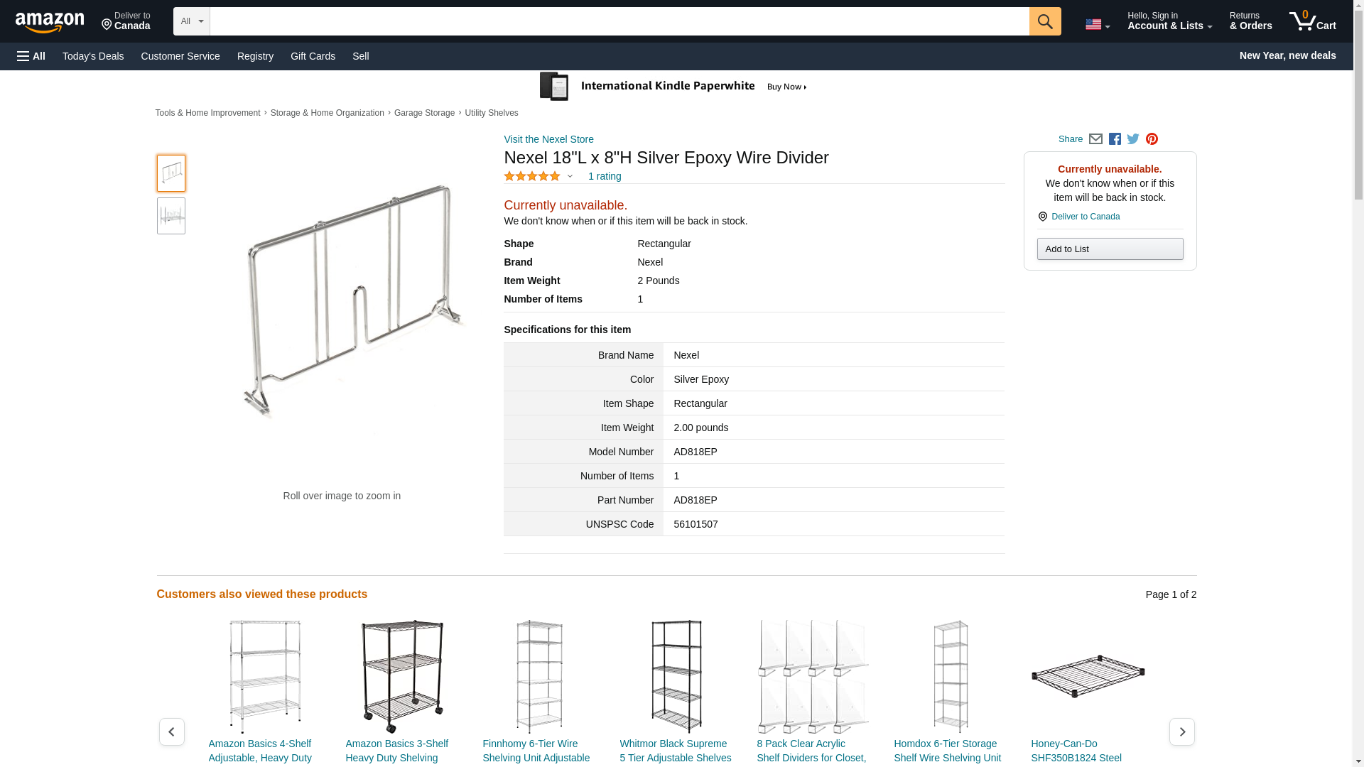 18"L x 8"H Silver Epoxy Wire Divider. Install easily without the use of bolts, nuts or clips. Attaches at any point along the shelf. Nexelate™ is an attractive finish that consists of a Silver Epoxy powder-coat over a rust inhibiting undercoat. NSF approved for wet or dry use. , Lot of 1