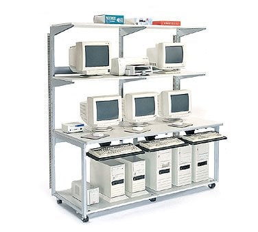 - Use additional shelving to accommodate extra monitors, printers, etc
