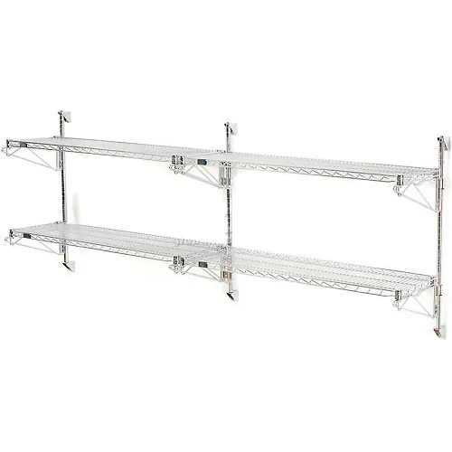 Nexel Poly-Green Wall Mount Wire Shelving, 72"W x 24"D x 34"H 2-Shelf Add-On