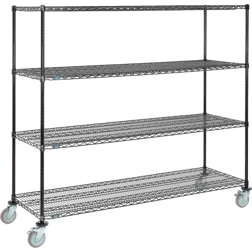 Nexel? 4 Shelf, Black Epoxy Wire Shelf Truck, 48"W x 14"D x 80"H, Polyurethane Brake Casters