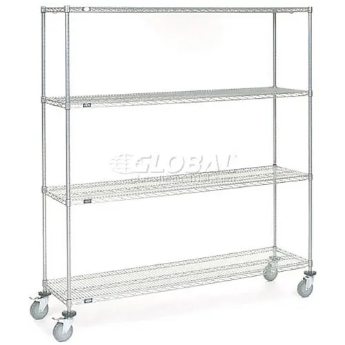 Nexel® 4 Shelf Truck, Chrome, 72"W x 18"D x 80"H, Polyurethane Swivel Casters, 2 Brakes