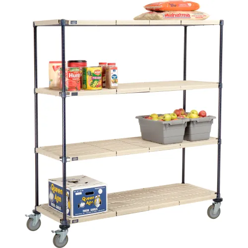Nexelite? Plastic Mat Shelf Truck w/Poly Brake Casters, 60"L x 24"W x 69"H, White
