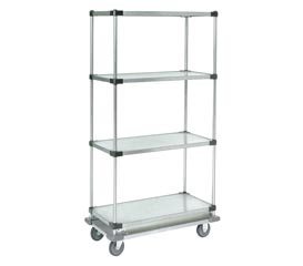 Nexel Industries products are trusted for their rigidity and strength which is why theyre used extensively in the food service health care industrial and commercial markets Warranted against rust corrosion these products come with maximum storage space and are easy to clean and maintainFeatures. Durable construction. Heavy duty steel. Solid Shelf Dolly Base TruckSpecifications. Color Galvanized. Max Height Top to Bottom 69. Max Width Side to Side 36. Max Depth Front to Back 18. Weight 98