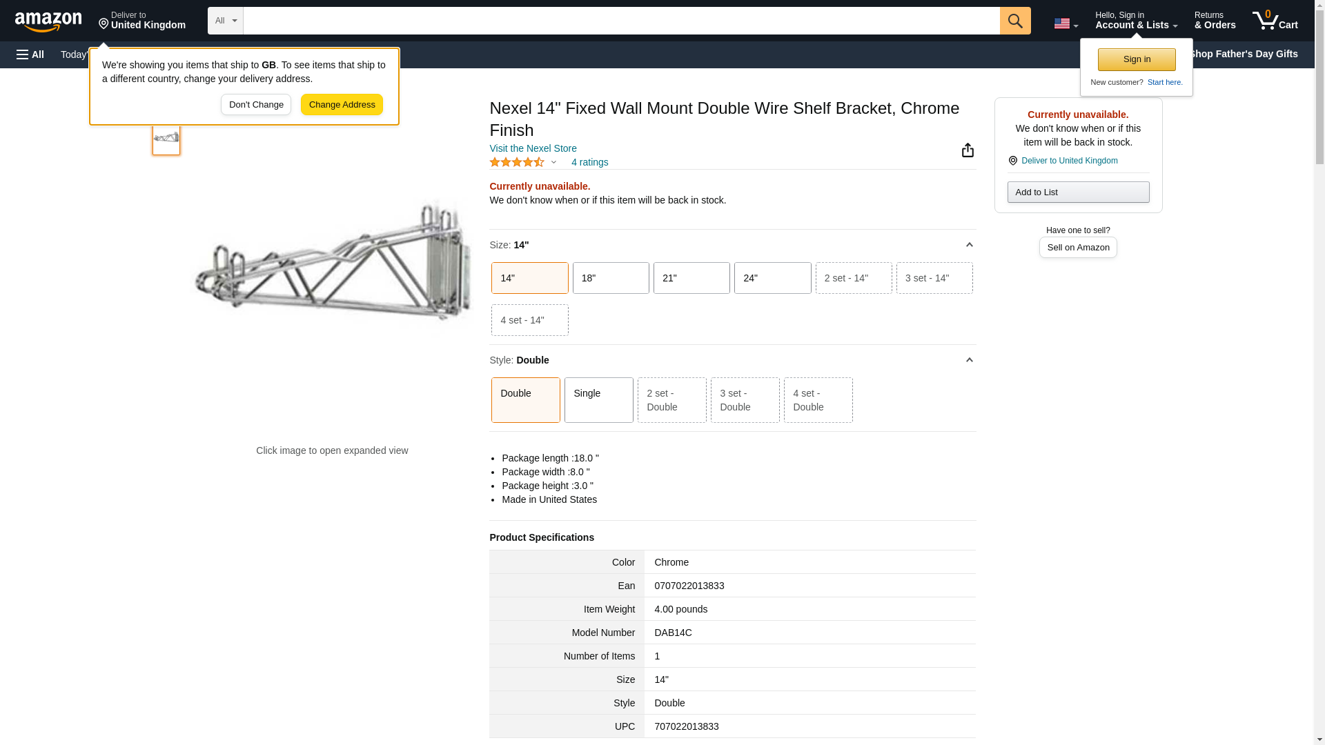 Nexel 14" Fixed Wall Mount Double Wire Shelf Bracket, Chrome Finish