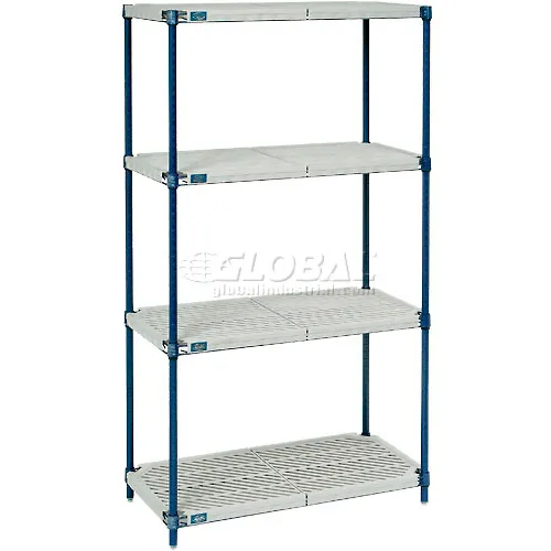 Nexel 4-Shelf Plastic Mat Shelving Unit with Blue Posts, 21"W x 48"L x 63"H