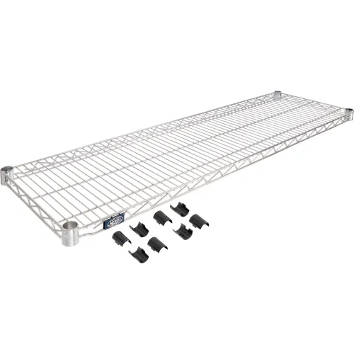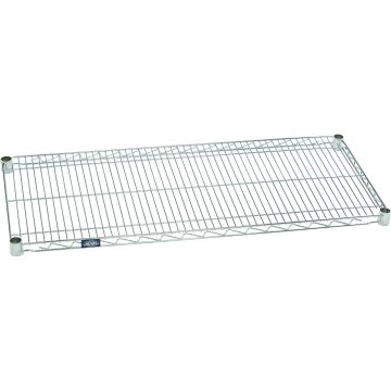 Design a strong, durable storage system to meet your needs with Nexel Chrome Wire Shelves and Posts. Solid shelf construction features thick diameter wire running front to back with additional truss supports to resist bending under heavy loads. Shelf collar slides over plastic snap-on sleeves for quick adjustment without disassembling the entire shelving unit. Clean open wire design will not collect dirt like solid shelves. Chrome plated finish.