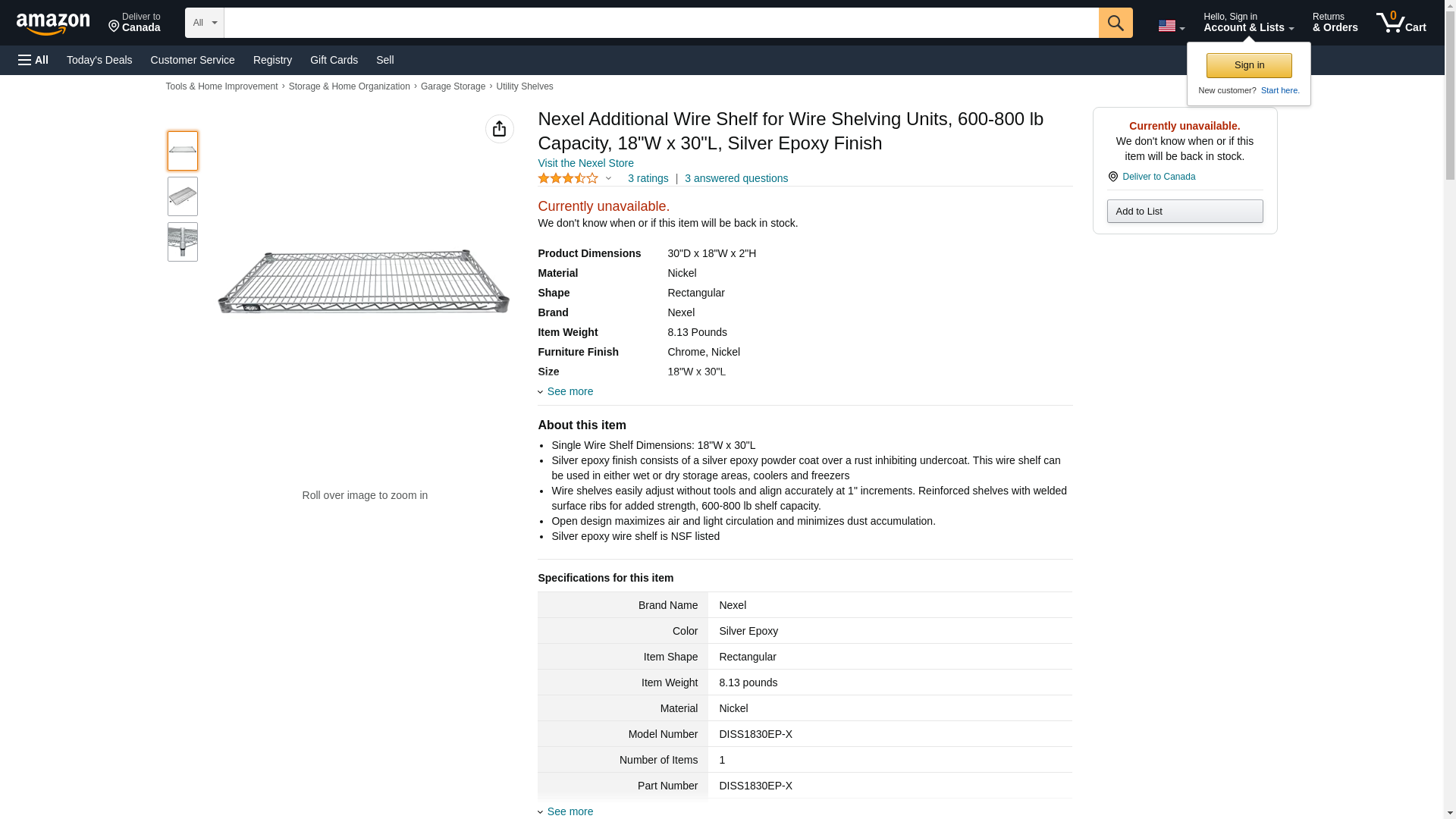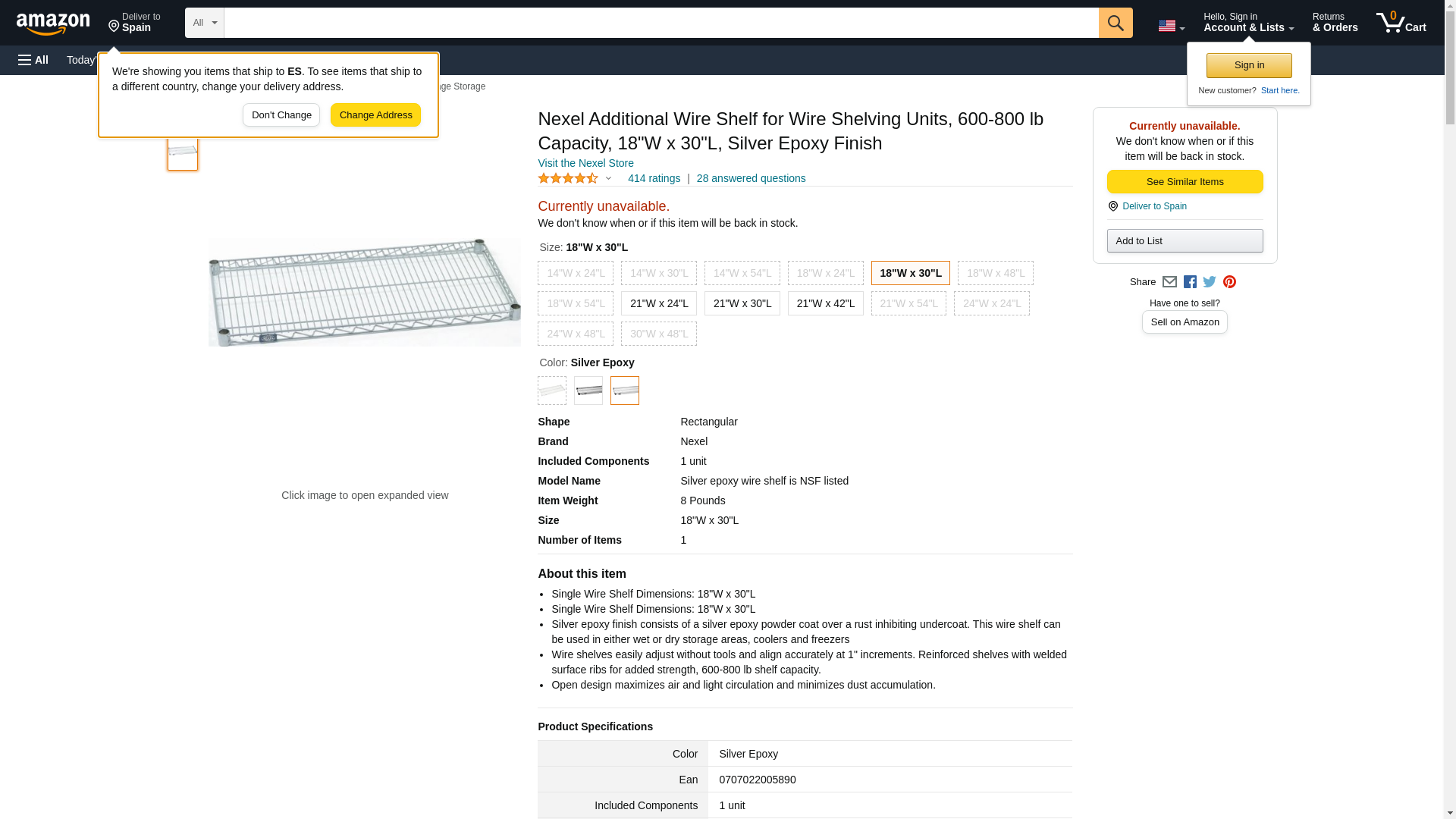 Nexel Additional Wire Shelf for Wire Shelving Units, 600-800 lb Capacity, 18" W x 30" L, Silver Epoxy Finish