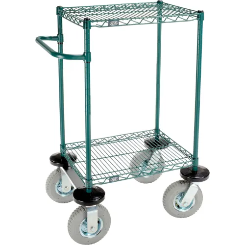 Nexel® 2 Shelf Cart, Poly-Green®, 24"L x 18"W x 43"H, Pneumatic Rigid Casters