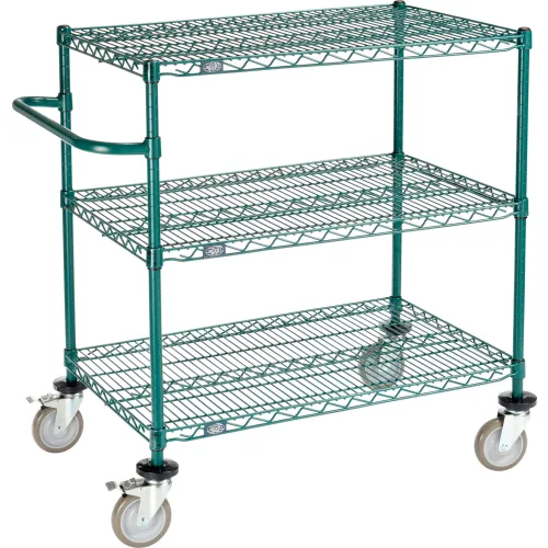 Nexel® 3 Shelf Cart, Poly-Green®, 36"L x 24"W x 40"H, Polyurethane Brake Casters