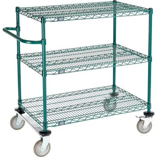 Nexel® 3 Shelf Cart, Poly-Green®, 36"L x 24"W x 40"H, Polyurethane Rigid Casters