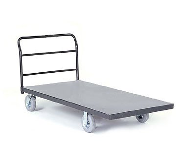 - Platform truck has all welded heavy duty 14 gauge steel deck, reinforced with internal longitudinal stiffening members for extra strength