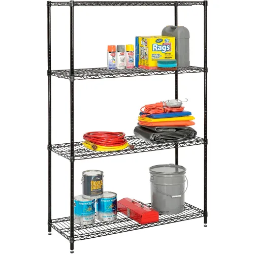 Nexel Economy Adjustable Wire Shelving Unit, 4 Tier, NSF Listed Commercial Storage Rack, 18" x 48" x 74", Black Epoxy