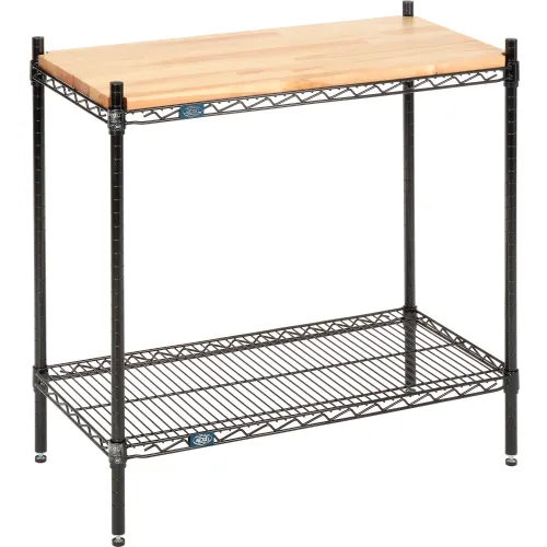 Nexel Wire Display Unit, 36" x 18" x 34", Solid Hardwood Butcher Block Top, 2 Tier Black Epoxy Powder Coat, Adjustable Shelves, 800lb Per Shelf Capacity, Leveling Feet with Glides