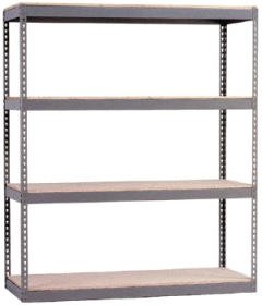 Rivet Rack In Stock for IMMEDIATE delivery For Greater Capacity consider BULK Racks Basic Unit is 7 Feet Tall and includes 3 levels-Shown with extra shelf Capacity-As High as 1500 Pounds Per Shelf Go Mobile ! - 48 x 24 and 60 x 24 units can utilize Dollies with 8 x 2 rubber casters with 1200 pound capacity Available with particle board , wire deck or no decking at all Consider wall brackets for added stability and tie plates to connect units Label holders are available as well as rubber mallets for easier assembly Order Now in Gray or Tan