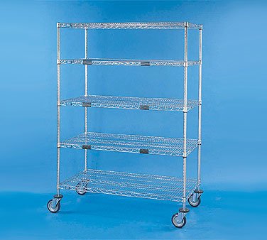 Nexel XS548EPZ Exchange and Linen Transport Truck, Standard Duty, 5 Wire Shelves, Three Sided Enclosed, 24" Width x 48" Length x 69" Height, 1200 lb Capacity, Poly-Z-Brite Finish, Clear Epoxy