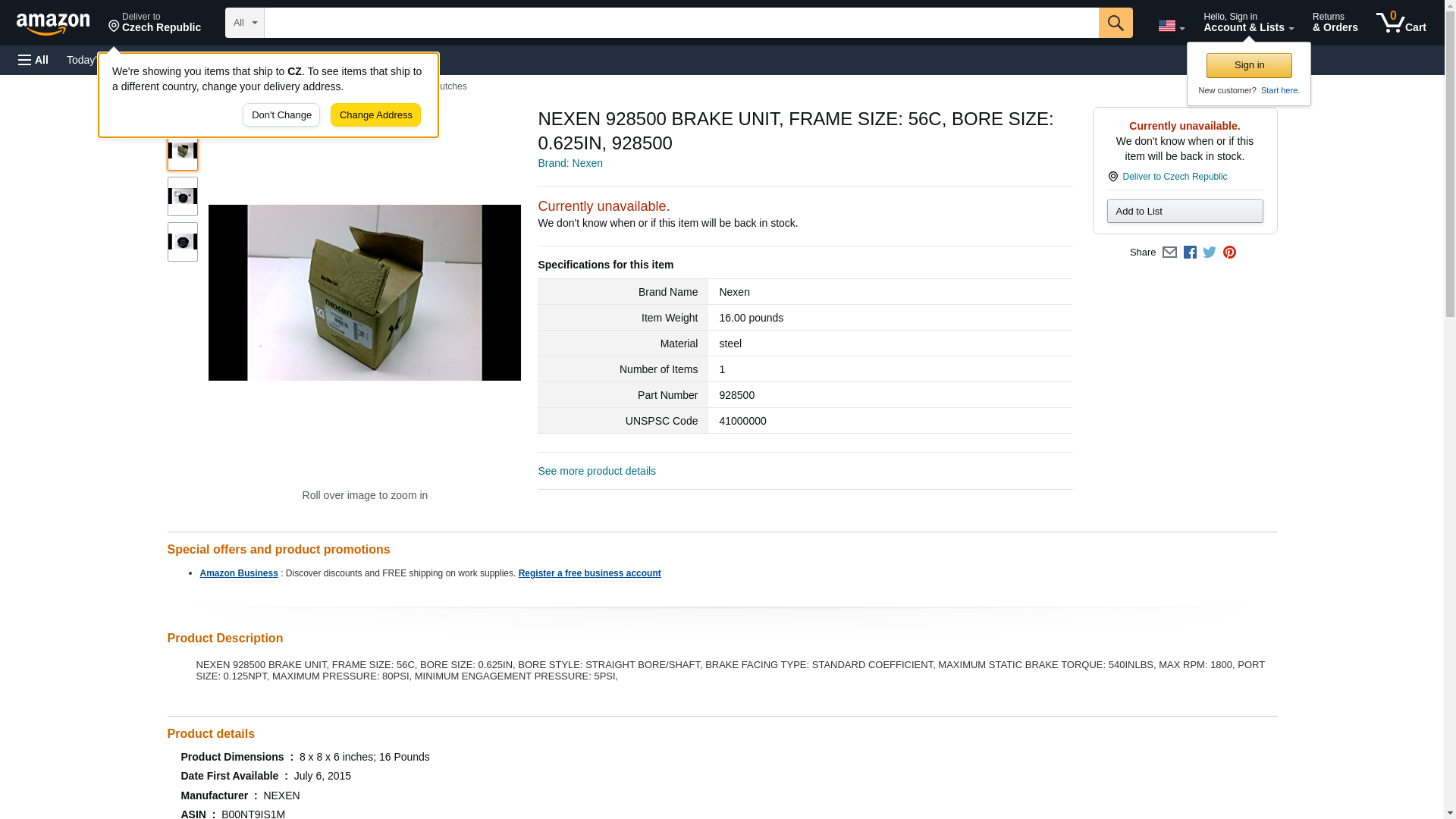 NEXEN 928500 Brake Unit, Frame Size: 56C, BORE Size: 0.625IN, 928500