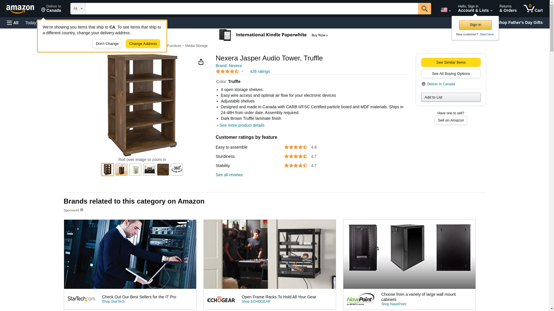 | Feature | 4 open storage shelves |