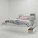 - Added storage under the bed with 3 drawers on metal slides . Features a unique metal and hardwood slat construction allowing for easy assembly, sturdy construction and easier handling.