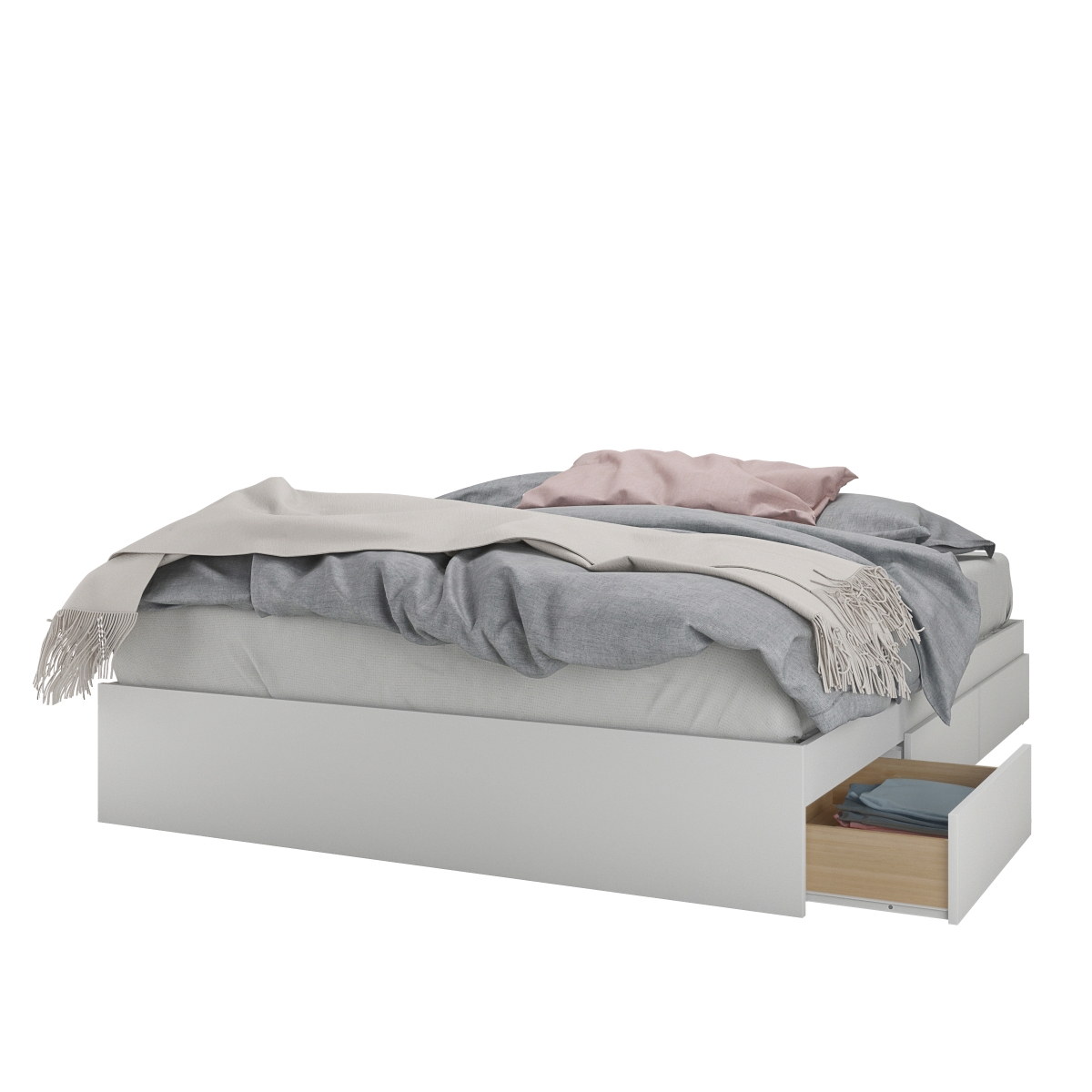 - This Nexera bundle #400940 includes the 3-Drawer Queen Size Bed in white and Queen Size Storage Headboard in white (376003, 346903).