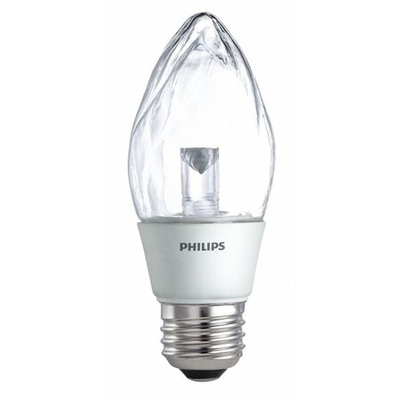 Philips EnduraLED Dimmable Candle LED Lamps provide smooth dimming and decorative, energy-saving ambiance. Their higher lumens provide bright light in all directions, giving lighting designers an alternative to incandescent sources. High efficacy LED decorative light - Dimmable - Instant-on light - Emits virtually no UV/IR light in the beam - 20,000 hour rated average life - Clear design available in bent, blunt and flame tip candles - Installs into existing candelabra and medium base fixtures - Save over 21 watts of energy when compared to a 25W incandescent - Contains no mercury
