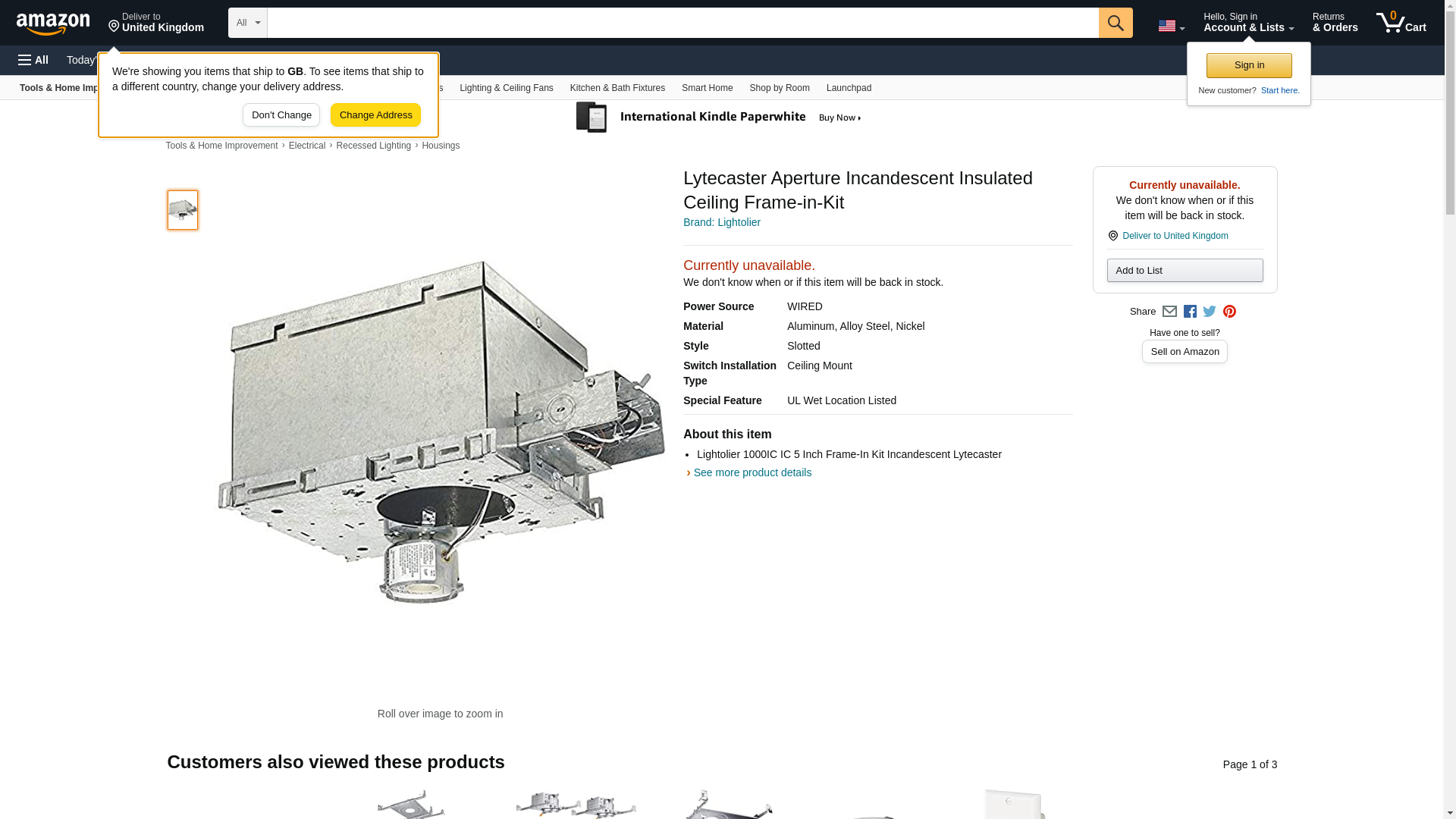 Lightolier 1000IC IC 5 Inch Frame-In Kit Incandescent Lytecaster