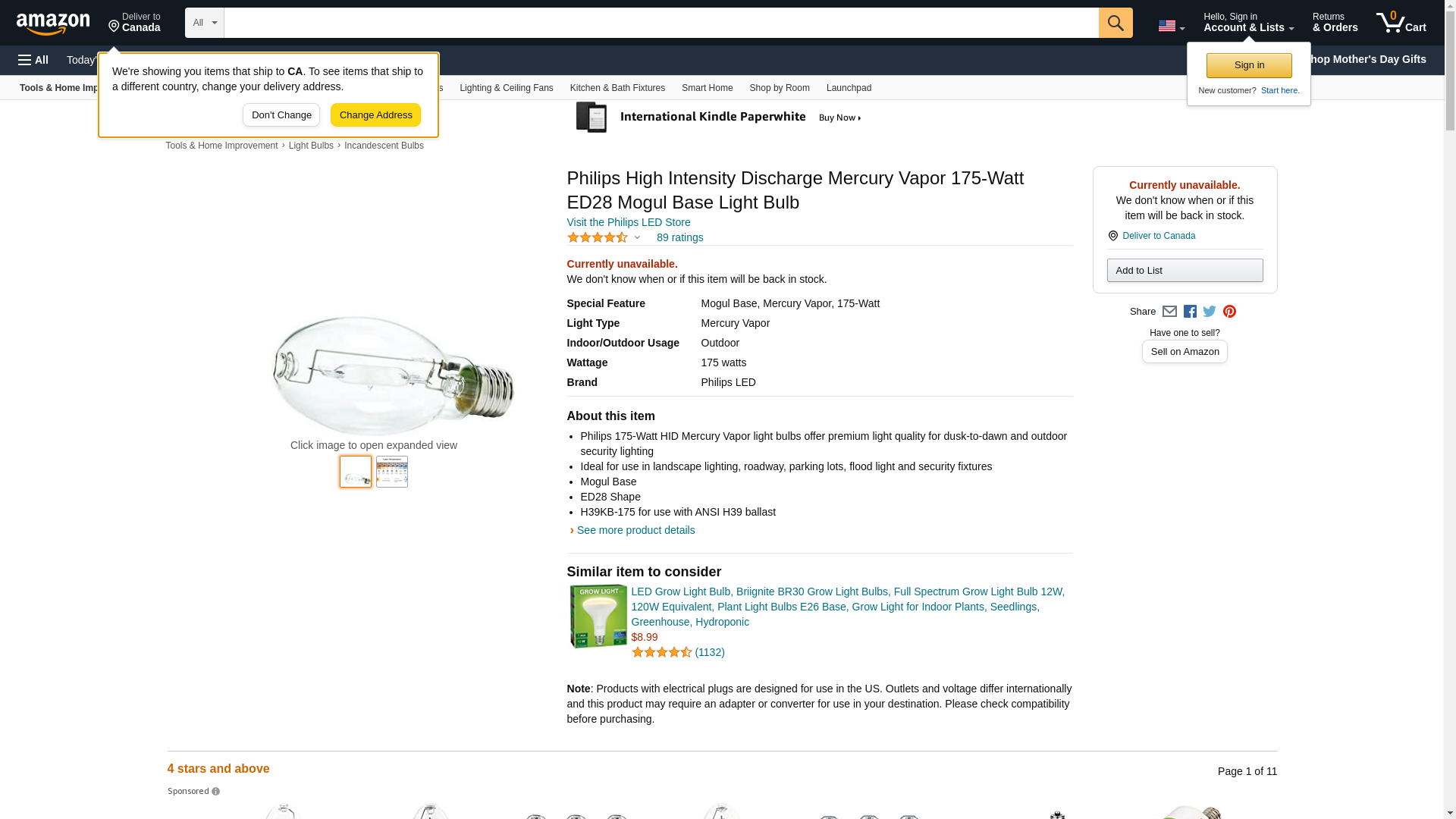 - Philips 175-Watt HID Mercury Vapor light bulbs offer premium light quality for dusk-to-dawn and outdoor security lighting