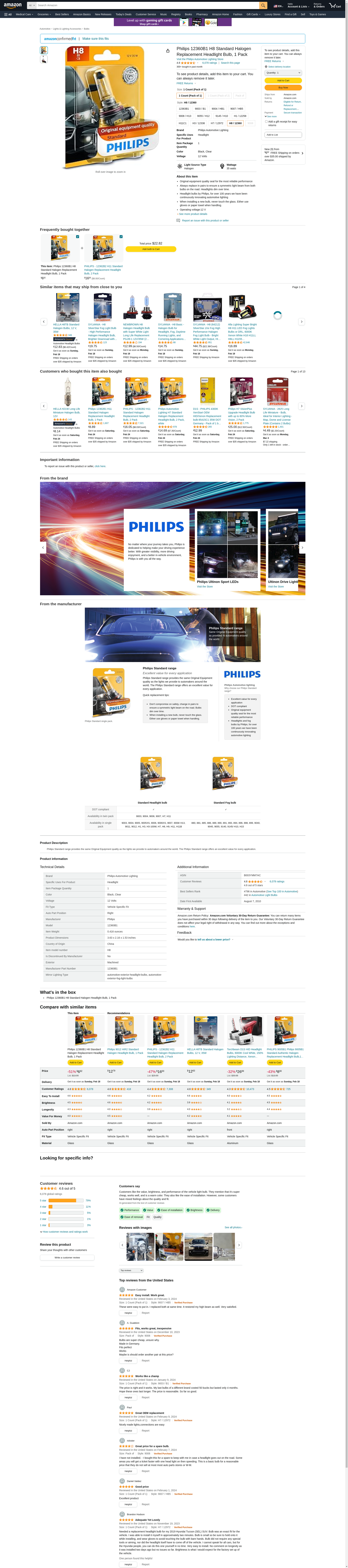 Philips H8 Standard Halogen Headlight Bulb (Pack of 1)
