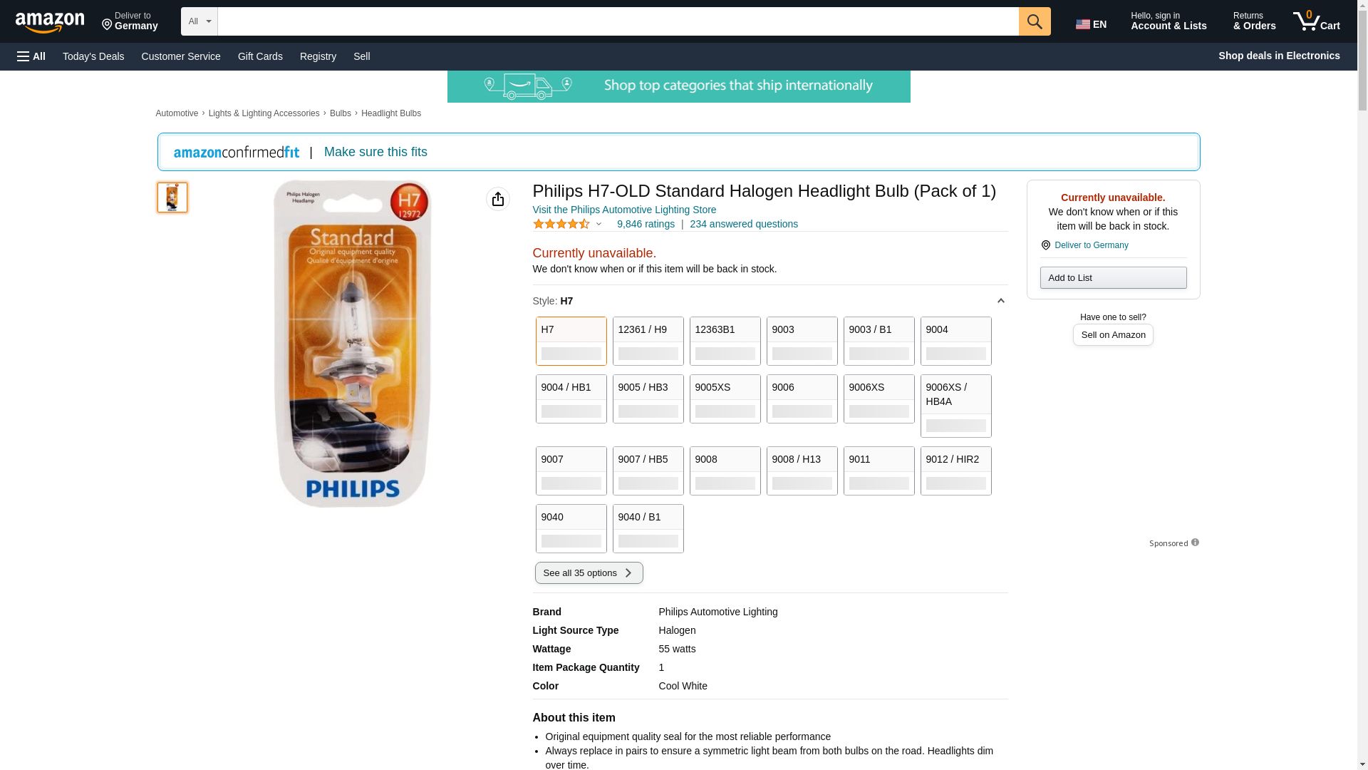 Philips H7-OLD Standard Halogen Headlight Bulb (Pack of 1)